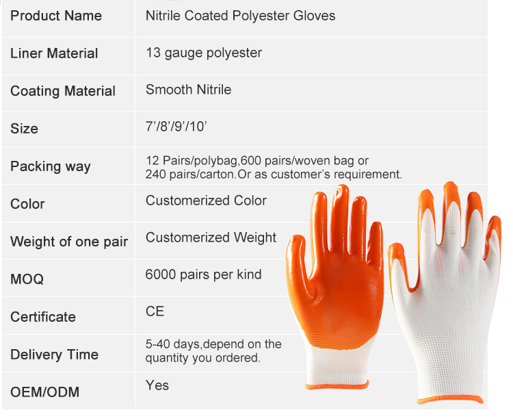 - Nitrile Coated Polyester Gloves