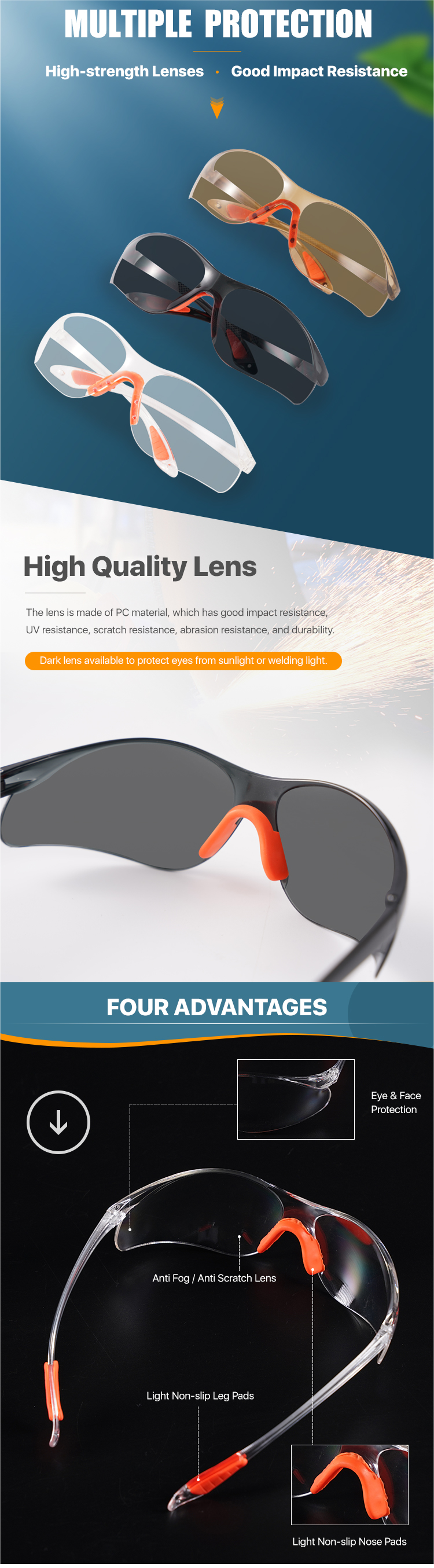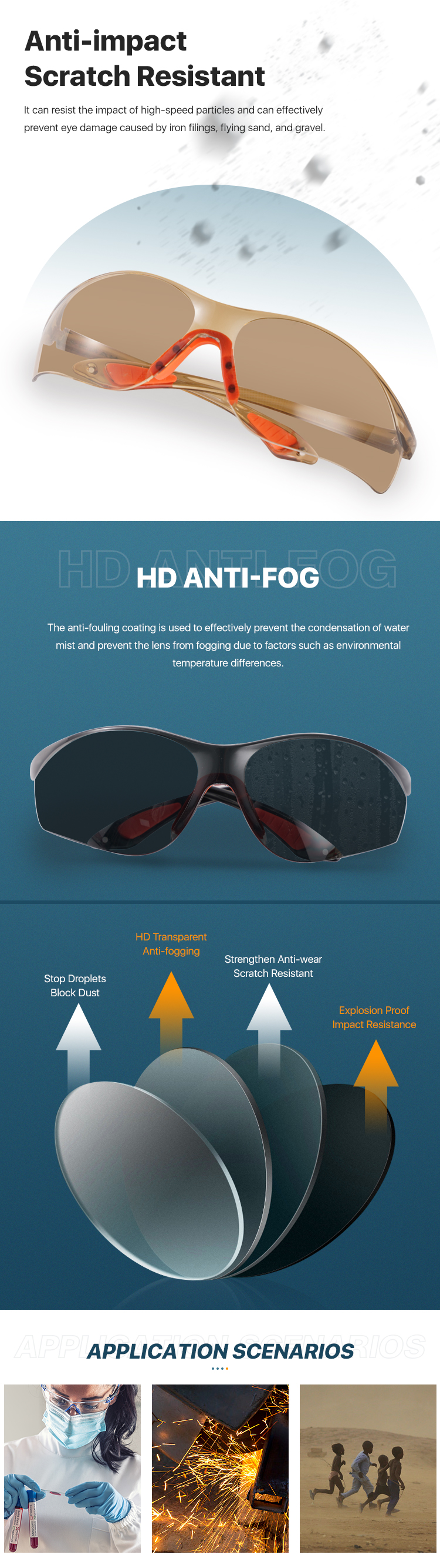 Anti-impact/Anti-fog/Anti-scratch/Splash resistant