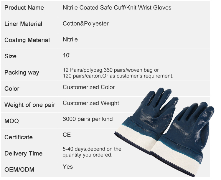 - Nitrile Coated Safe Cuff Gloves