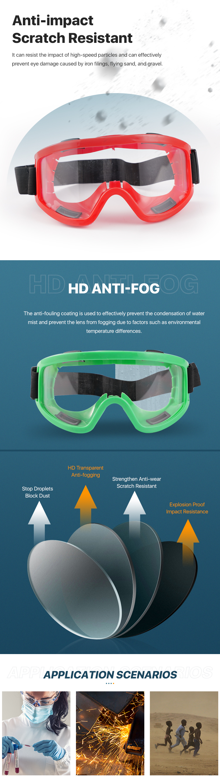 Anti-impact/Anti-fog/Anti-scratch/Splash resistant