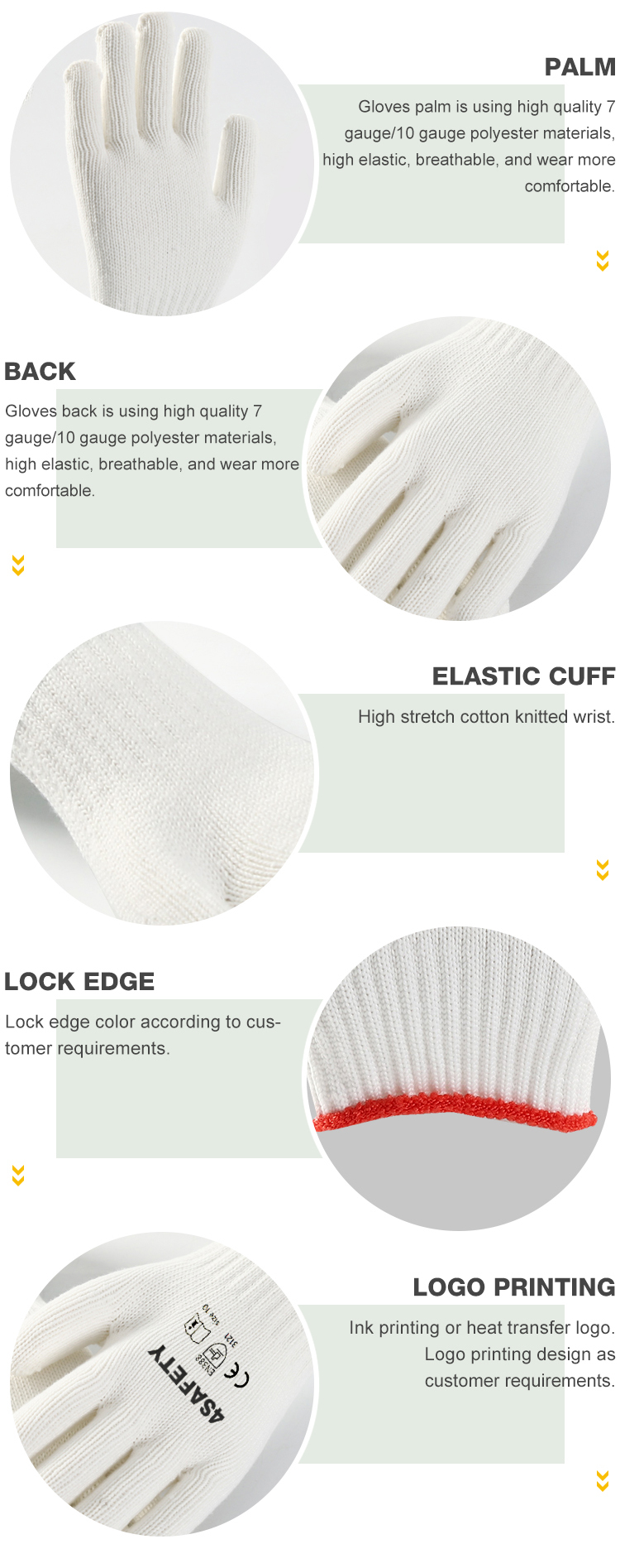 - 10 gauge white polyester gloves