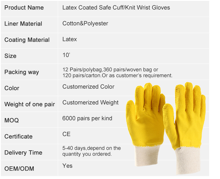- Latex Coated Knit Wrist Gloves