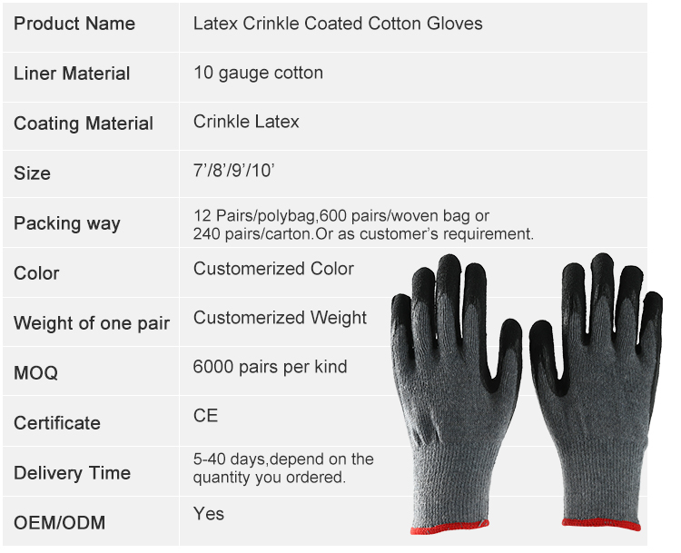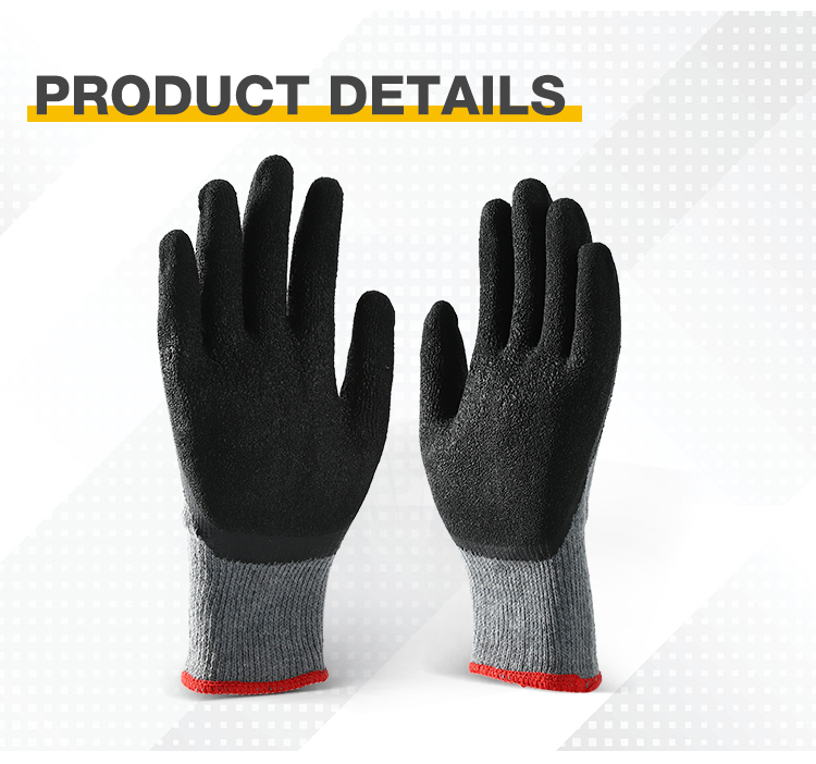 Latex Work Gloves Cotton Shell Crinkle Latex Coated Construction Safety Work Gloves