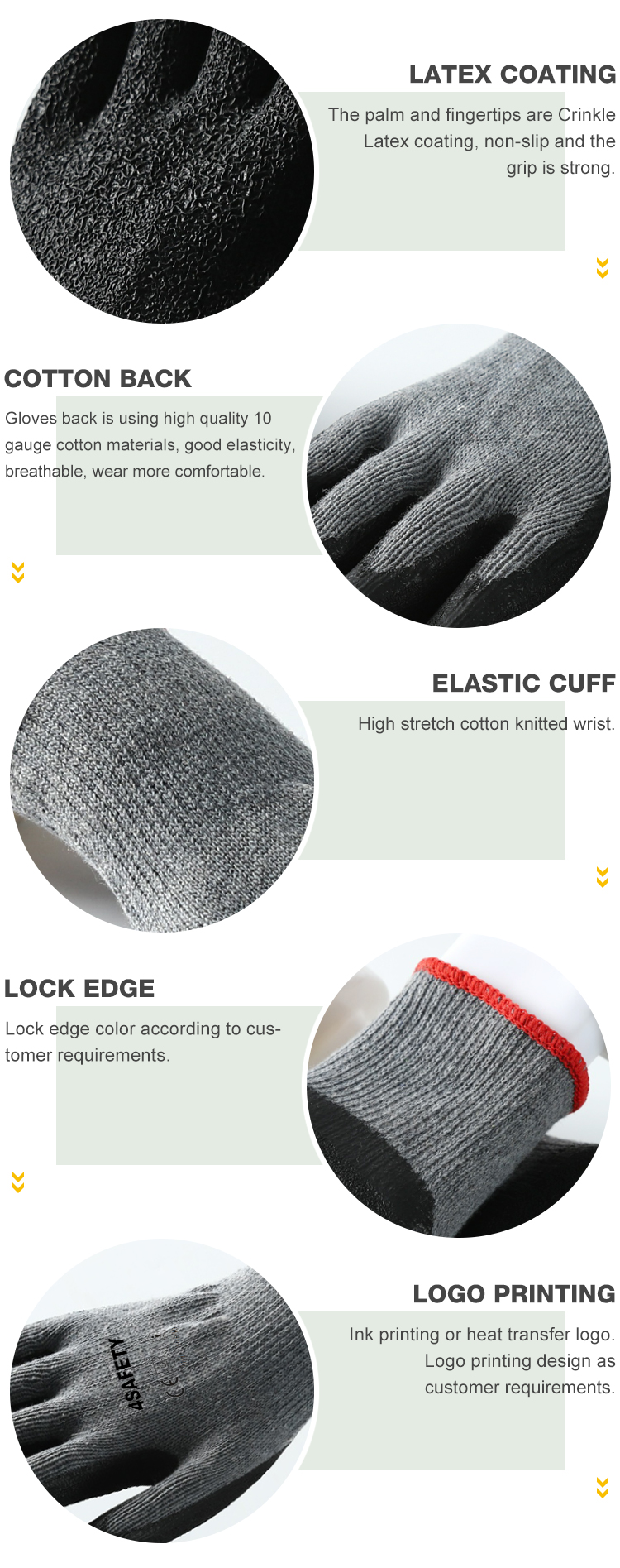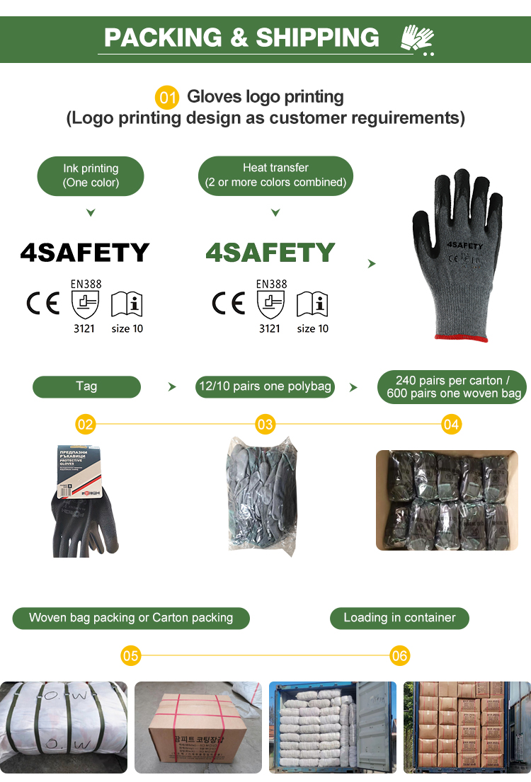 4Safety Latex Coating Gloves with high-quality cotton lining, The palm and fingertips are Crinkle Latex coating, non-slip and thegrip is strong.