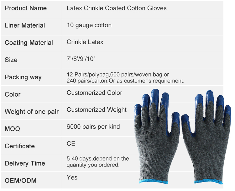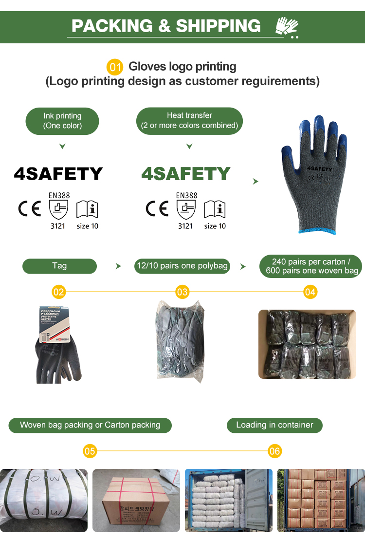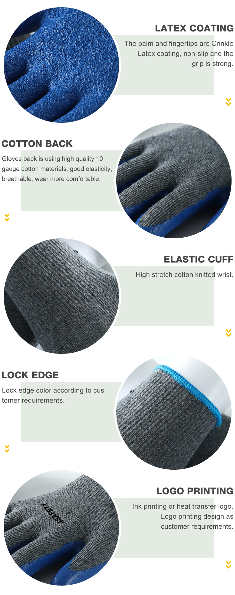 4Safety Latex Coating Gloves with high-quality cotton lining, The palm and fingertips are Crinkle Latex coating, non-slip and the grip is strong.