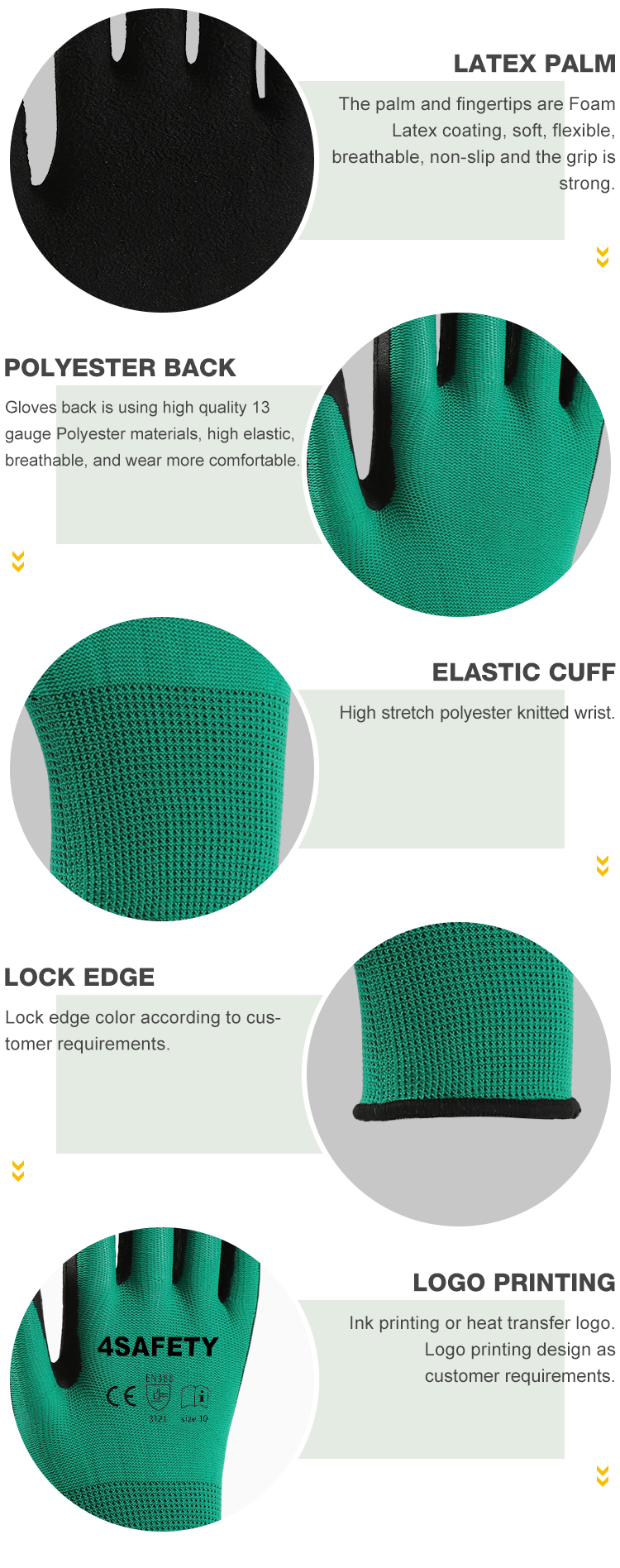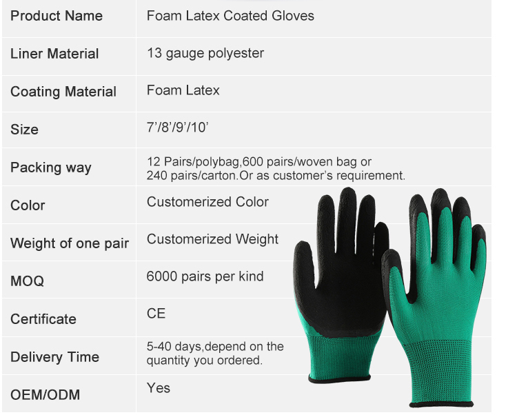 - Foam Latex Coated Gloves Green Black