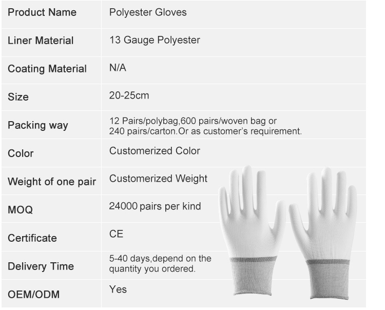 - 13 gauge white polyester gloves