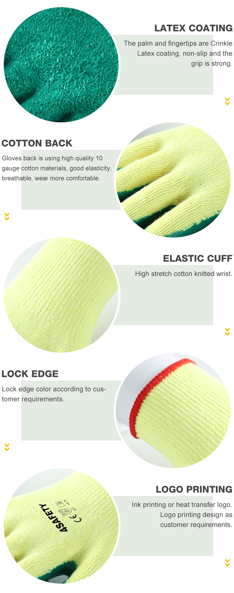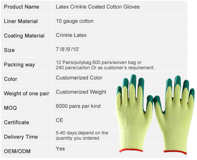 Shop the high-quality Yellow And Green Latex Coated Crinkle Wrinkle Cotton Gloves at our factory. Designed for durability, they provide exceptional grip and protection. Order now!