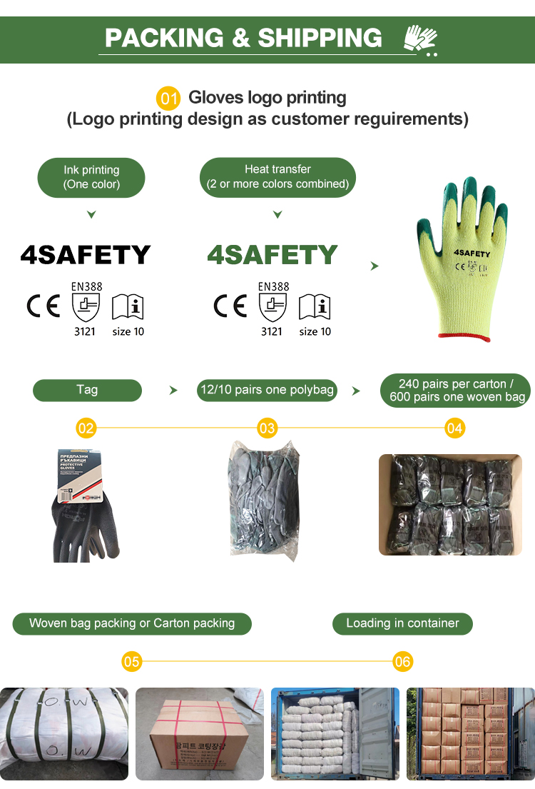 4Safety Latex Coating Gloves with high-quality cotton lining, The palm and fingertips are Crinkle Latex coating, non-slip and the grip is strong.