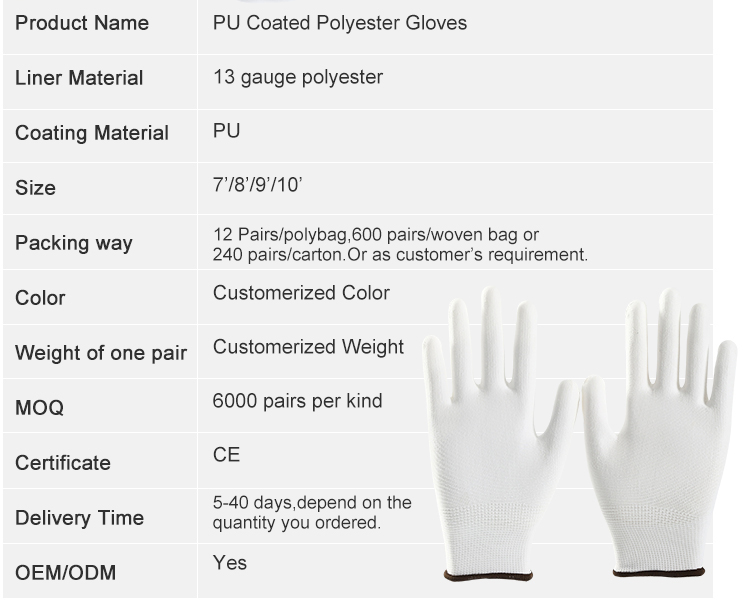 - PU Coated Polyester Gloves