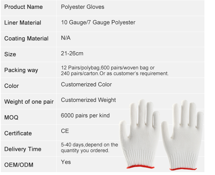 - 10 gauge white polyester gloves