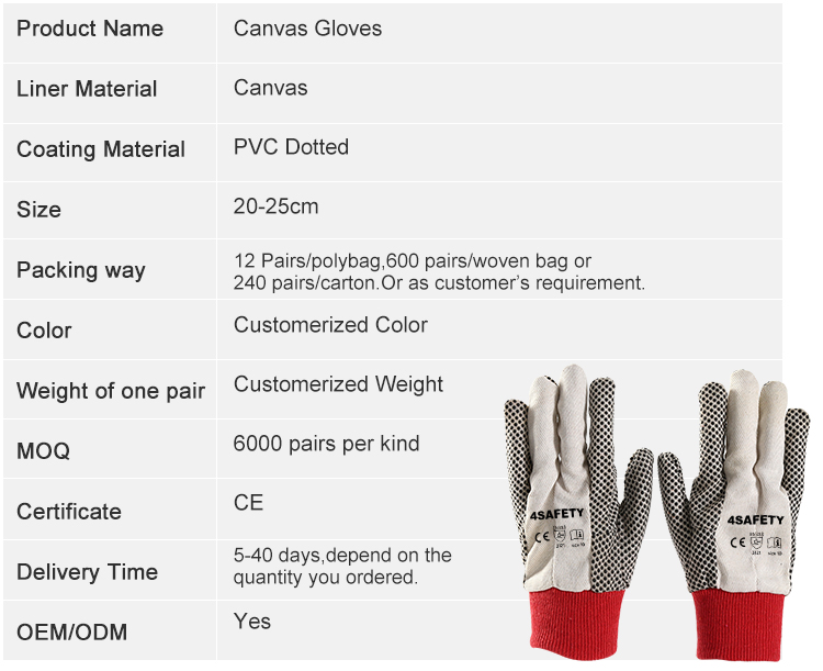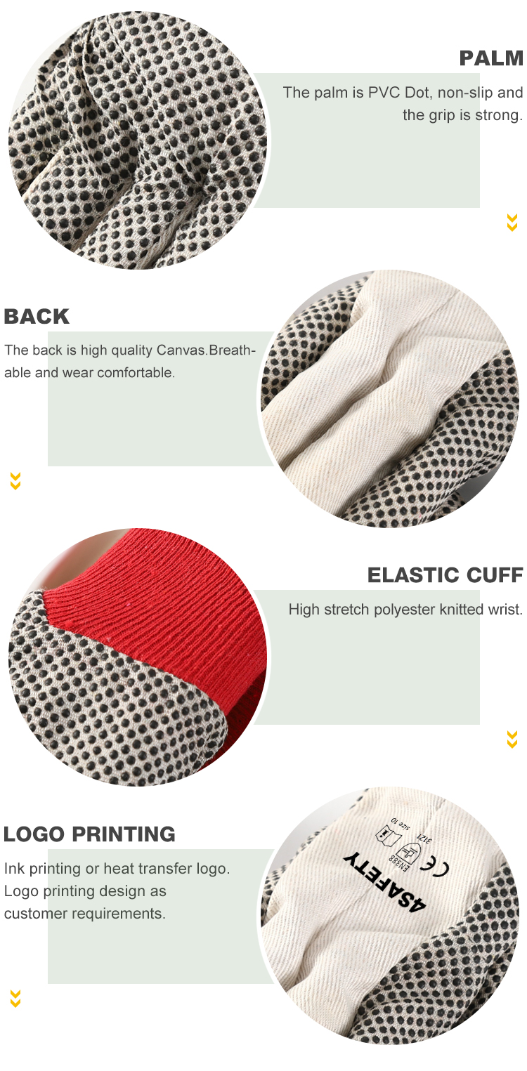 4Safety PVC Dotted canvas Gloves with high-quality canvas lining,The palm is PVC Dot, non-slip and the grip is strong.