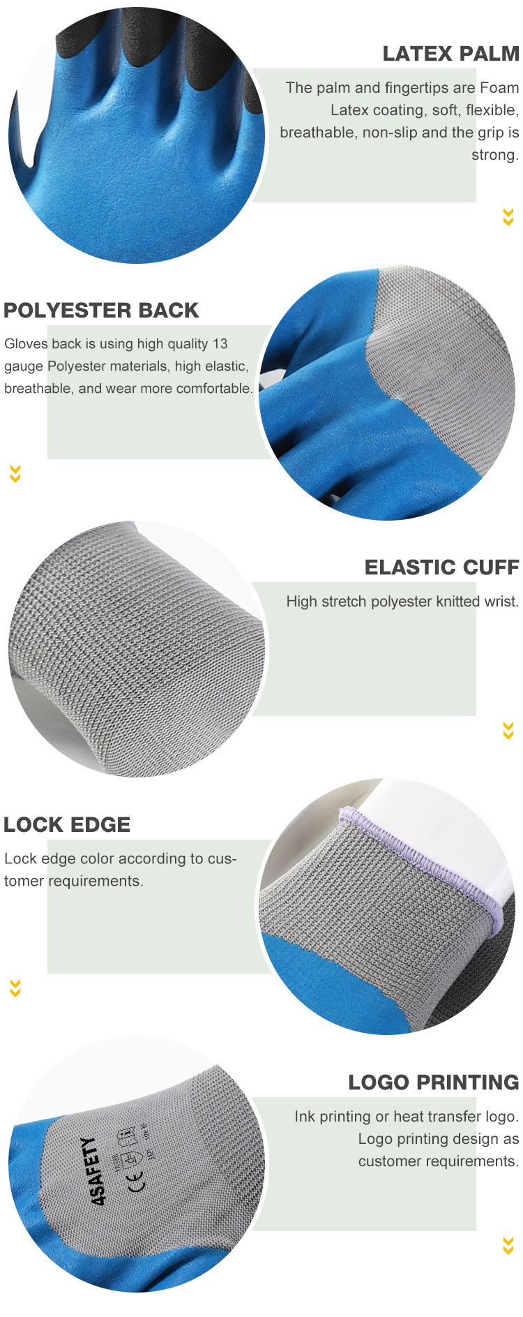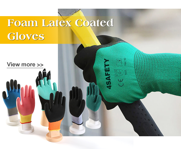4Safety Foam Latex Coating Gloves with high-quality polyester lining, the palm and fingertips have foam latex coating, good elasticity, anti-slip grip performance is better, tear resistance.