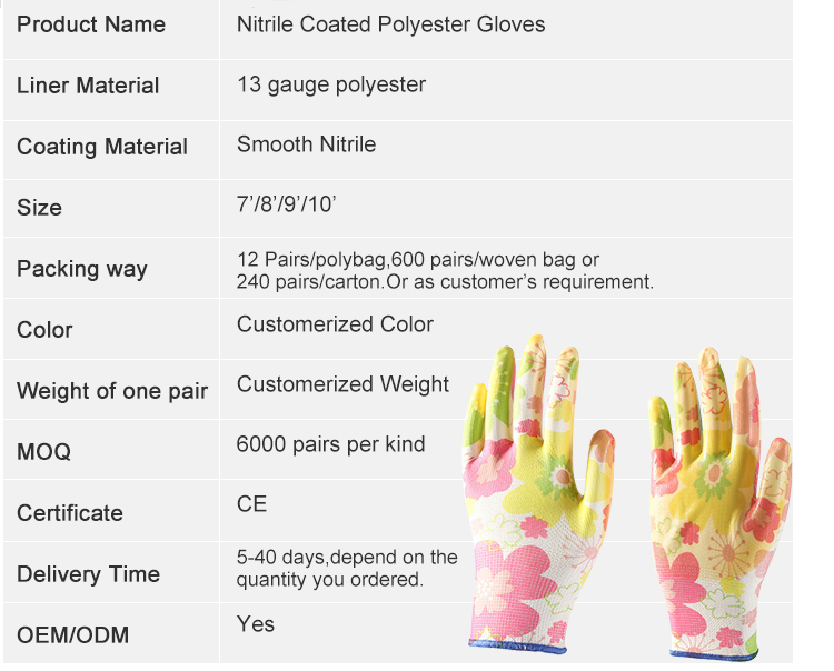 - Nitrile Coated Polyester Gloves flower