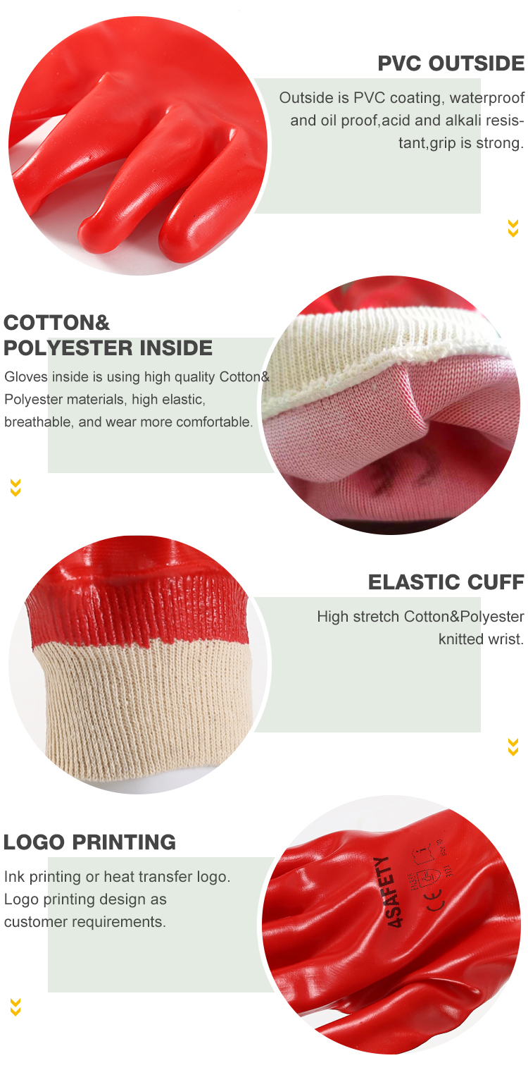 4Safety PVC Coating Gloves with high-quality polyester&cotton lining, water proof and oil proof,acid and alkali resistant,grip is strong.