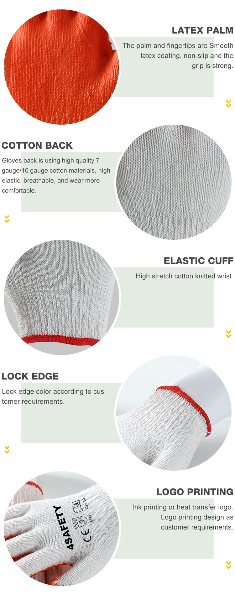 4Safety Latex Coating Gloves with high-quality cotton lining, The palm and fingertips are Smooth latex coating, non-slip and the grip is strong.