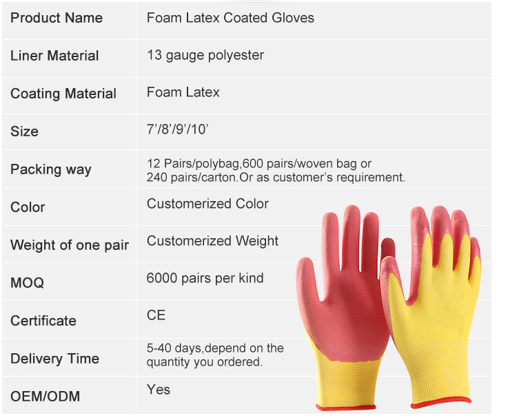 OEM Foam Latex Coated Gloves