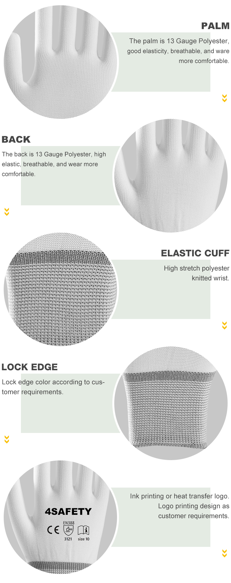- 13 gauge white polyester gloves