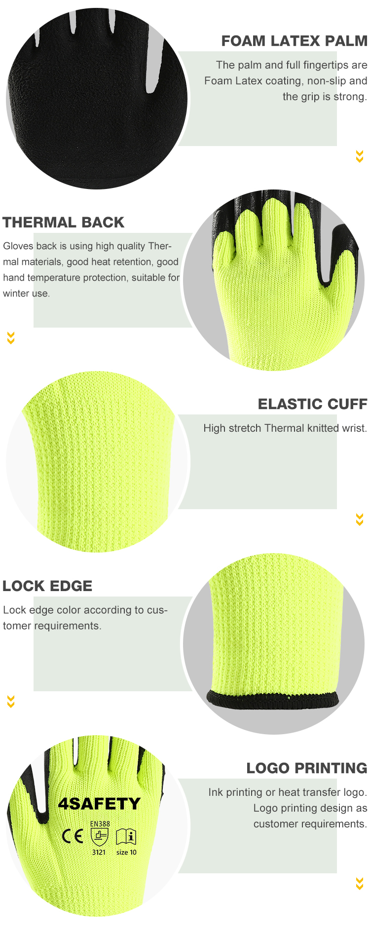 4Safety Thermal Gloves with high-quality thermal lining, The palm and fingertips are Foam Latex coating, non-slip and the grip is strong.