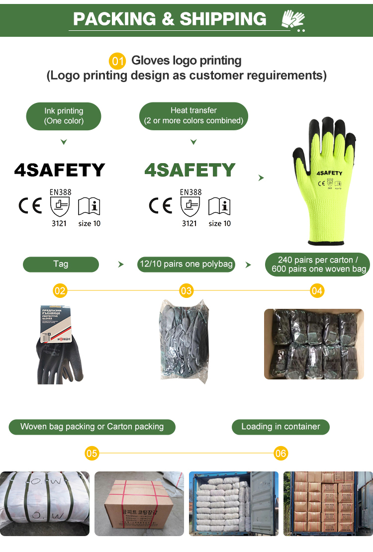 4SAFETY China Supplier Latex Gloves For Work Safety Cotton Gloves Custom Logo Gardening Gloves