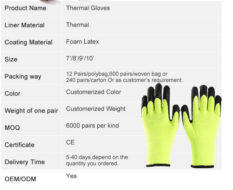 Stay warm and maintain a strong grip with our Winter Thermal Latex Foam Coated Warm Gloves. Made by our factory, these gloves are perfect for cold weather activities.